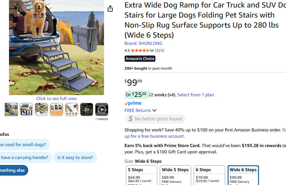Hubby and I made the decision to purchase this ramp after Rocky’s first major ankle injury. While we were distracted lifting Peanut and my wheelchair into the car, a high jump from the garage floor into the back of our family’s minivan resulted in a horrible sprain that had Rocky limping for a few days and his ankle swollen. The result was the purchase of these stairs, to hopefully deter Rocky from jumping again.